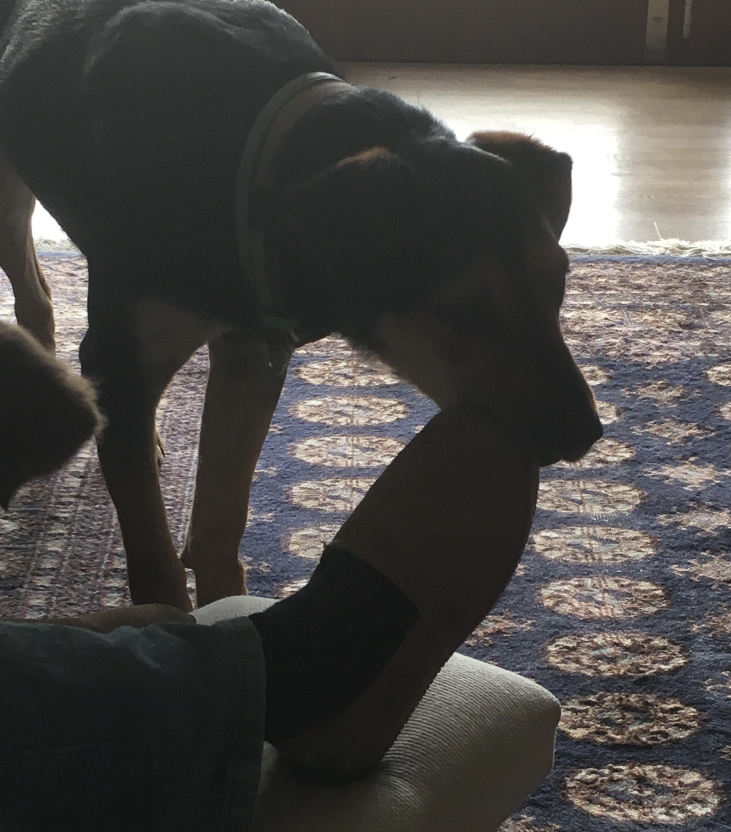 Flo is much like Scooby Doo at times, she is just as dumb as he is too. But there are times when she shows potential. She is also a bit of a kleptomaniac. Anything from shoes, but only one of the pair, to the cats scratching pole. Yip.. one evening, while we were watching tv, she quietly strolls past us with the cats scratching pole hanging out of her mouth. Like this was a normal thing to do..Nothing to see here folks, I’m just walking past! She also seem to be a little OCD because she puts the shoes and all other items she had taken, in a straight line on the lawn. Like she was at a country market, ready to sell her wares. Anyway….