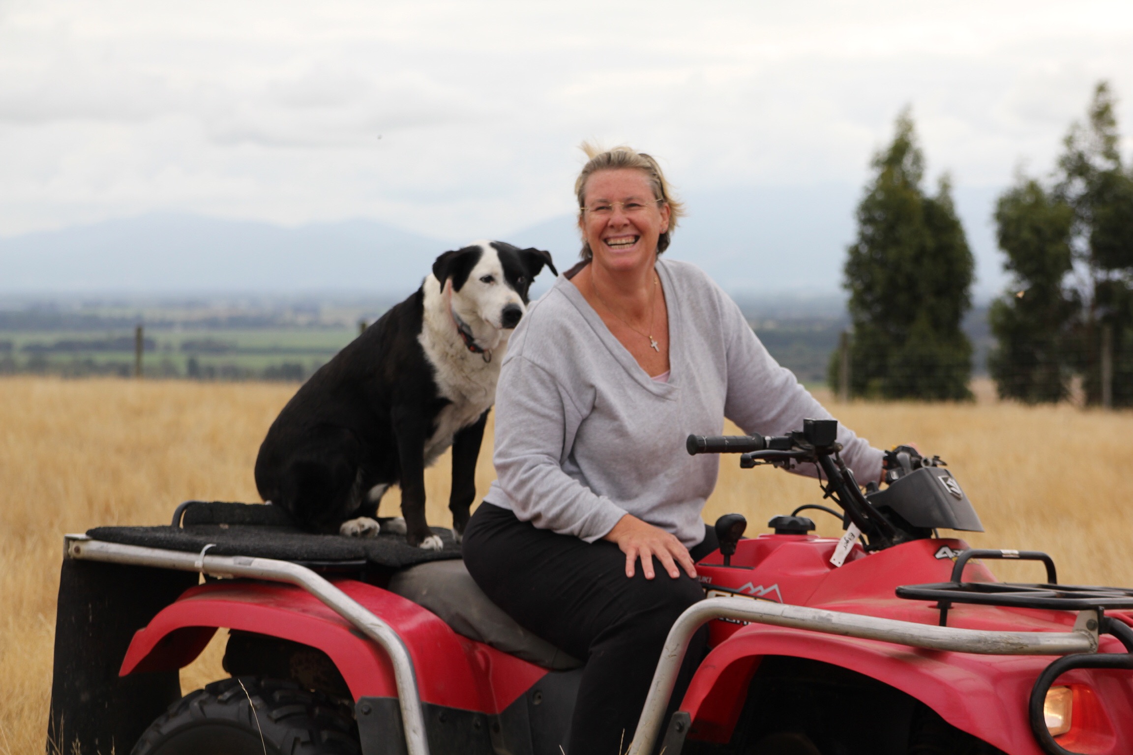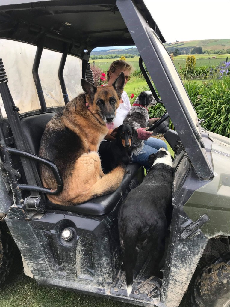 Soon after moving onto the farm, we knew we needed a dog that could help with the stock. Adoption was once again first choice. A retired working dog was exactly what we needed. A pooch who knew what to do and how to handle amateur farmers. In other word, teach the farmer! As you know, I found beautiful Ned from a notice at the vet. When we collected Ned we had no idea what we were letting ourselves in for. All we were told by her owner, was that she was about 9 years old and not really keen on people. Wonder why that is…. maybe because she has never had the opportunity to be with people. From what we could gather, she had been with the farmer all her life. Her life consisted of having puppies, rounding up sheep every couple of days and other than that, locked up in a cage all day! It took her almost 3 months for us to be able to pat her. This old girl had been through hell! And here is where I loose my respect of some farmers. The dogs are working dog and that is it! Locked in a cage and fed once a day, they have no social inter action. 2 years on and she is a happy lady. Still very very weary of people and takes time to get to know them. But she is a sweetheart when she comfortable. She was the first dog I had every really seen smile! Rare moments but memorable. She spends most days laying on the back of the quad bike or on her bed in front of the fire place.. Those are her safe place and happy places and if that makes her feel good, then so be it!