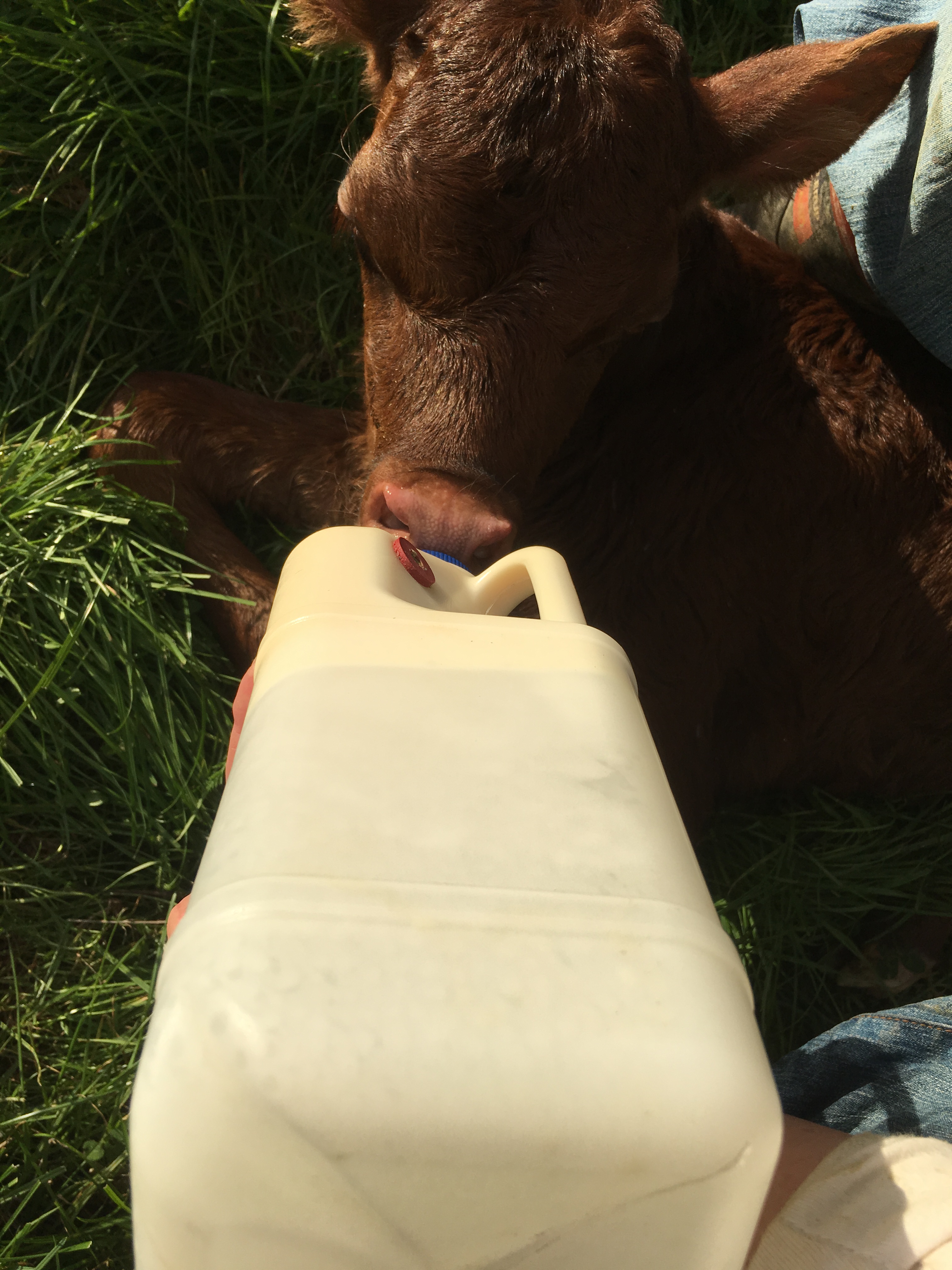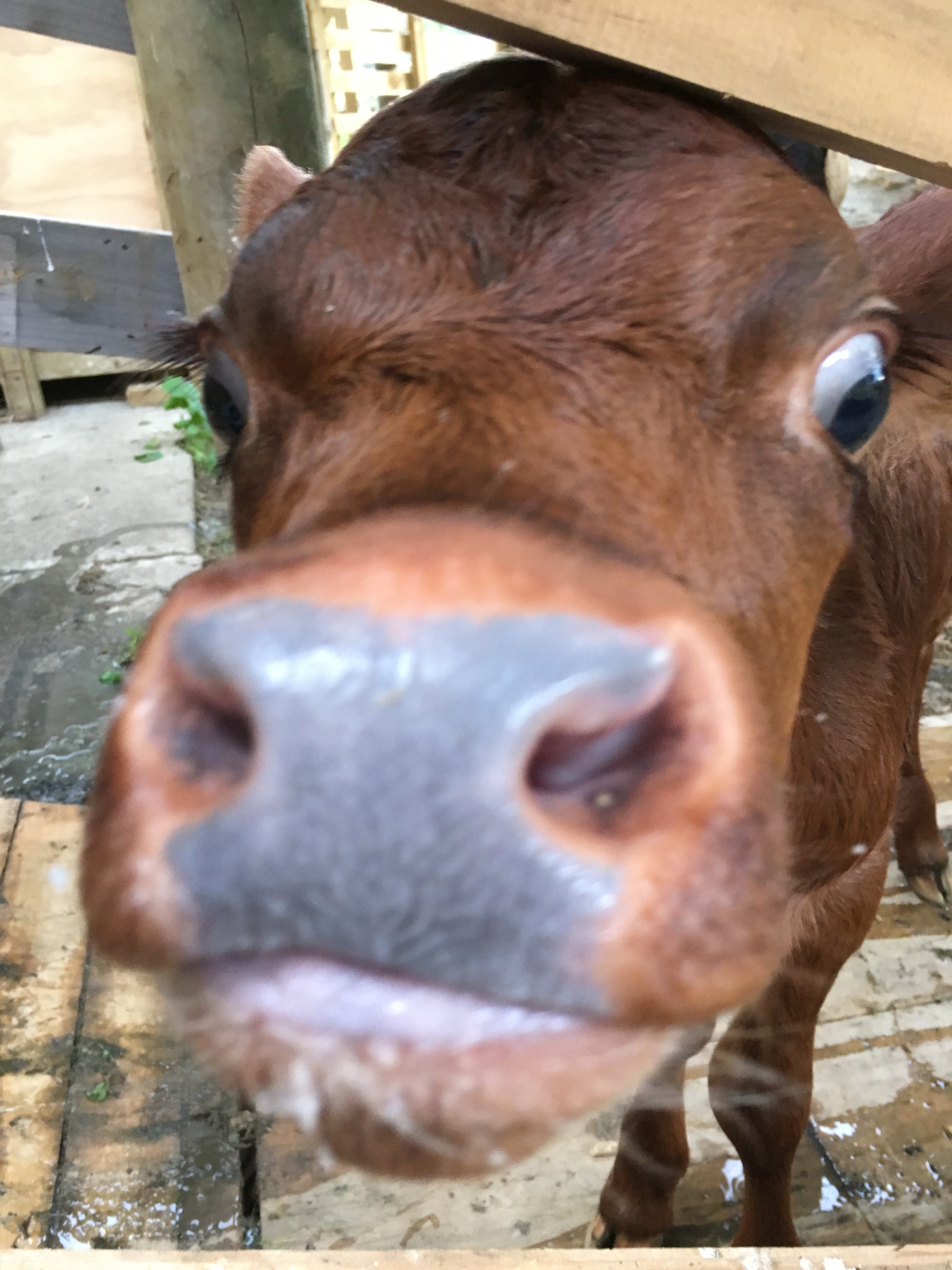 2/4/18 One truly doesn’t realise how old one is, until one has to pick up a 30Kg calf and carry it 65m. OMG….I thought I was going to burst a poop string! 🚑 But…. I stayed strong! Any Personal Trainer would have been impressed with my technique! Using my legs, I squat down, bum almost in the other paddock. I wrapped my arms around Sophs legs and then “tried”to stand up. Oh fek…. she not as light as I thought she would be. But Luc needed to know she was fine and I had to get Sophie to her. I couldn’t walk her in, I mean…her GPS to find mom’s udder is non comprehendo, so you can imagine trying to walk her 65m to the dairy shed. Nah…that was going to work! So still in my squat position, I take a VERY deep breath and shoot myself up, as if Lucy had poked her horn up my butt! Tucking my butt in and squeezing tightly( still not sure why…maybe trapping my insides in) I scurried along the fence to the shed. Breathing in through the nose out my mouth clearly resembling a freight train with a calf as a mascot! Lucy was being milked because Sophie has not found the tuckshop as yet! It’s painful for Lucy to carry all this milk, so she has to be milked twice a day. Finally I reach Lucy and tried desperately to put Sophie down with grace but it more like a fall from grace! Anyhooo, we took Luc’s milk, poured it in a bottle and shoved it down Sophs gob! At this point, I didn’t really care as I was still hyperventilating and trying to stop my legs from shaking. After awhile I managed to compose myself in front of a cow… what was I thinking 🙄… and everyone was happy. Mum was lighter, baby was full and I was fekked! T and I headed straight back to the house for hot cross buns and coffee. From now on… I walk Sophie in, even if it takes a bloody week!