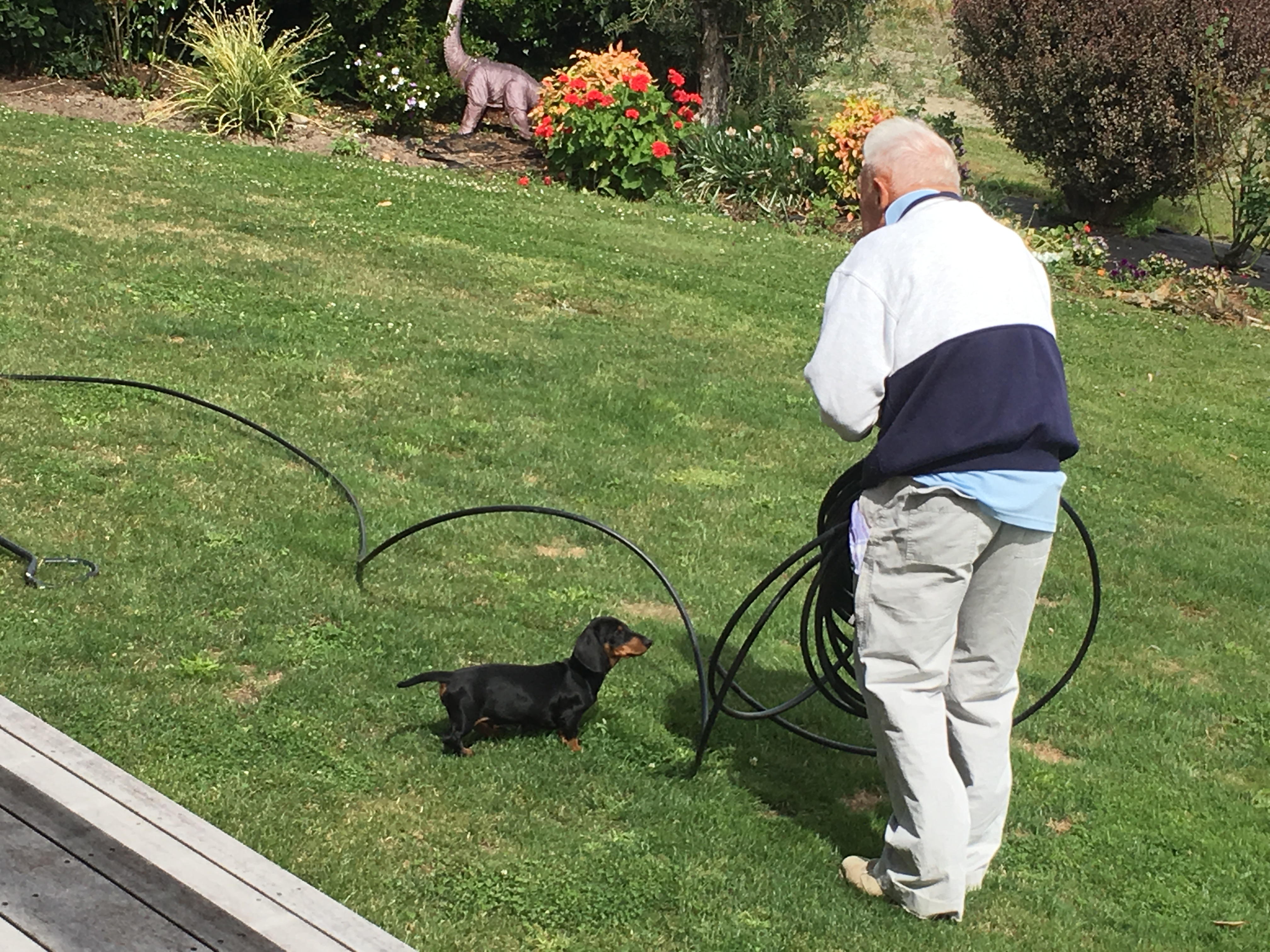 Showing grandad how to unwind irrigation piping